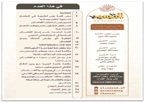 The Taliban’s own media, al-Sumud, sits in the background as an implicit rival project: it presents a nationalist-Islamist state with formal institutions and foreign relations November issue is organized around a sovereign “new Afghanistan” defended by martyrs’ blood and governed through recognizable structures. It foregrounds the foreign minister’s speech at the Moscow Forum, highlights press conferences by the government spokesperson and treats the recovery of Bagram airbase as “independence written in blood” and the humiliation of imperial greed. Across its pages, the Islamic Emirate is narrated as a normalized state with ministries, security agencies that provide regular briefings, and a foreign policy that engages regional forums. The jihad of the past two decades is re-coded as the founding war of a territorially bounded Islamic republic capable of managing airports, embassies, and diplomacy while keeping foreign troops out.